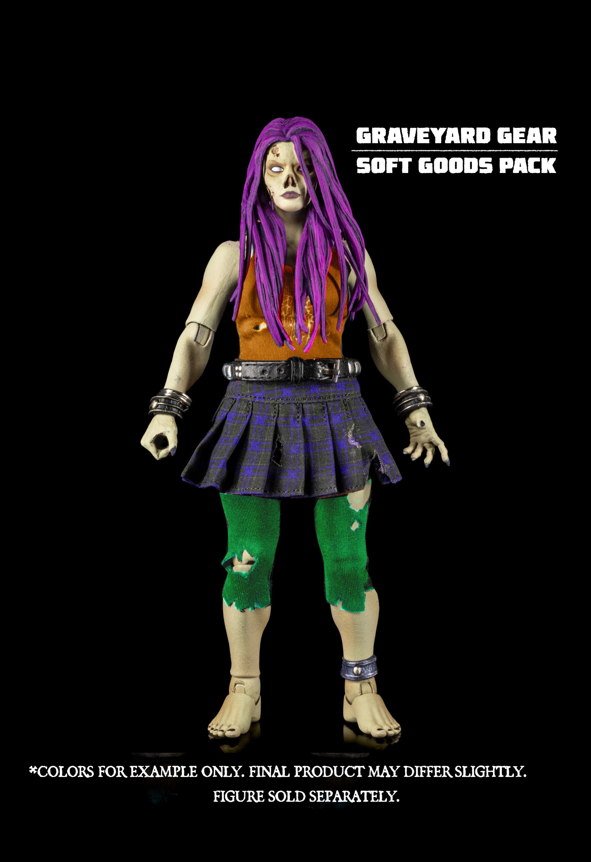 Die Graveyard Gear Softs Good Packs sind optional erhältlich und bieten alternative Versionen der Soft Goods, die bei den beiden Zombie-Figuren zu sehen sind. Mit ihnen kannst du deine Zombie-Horden individualisieren.